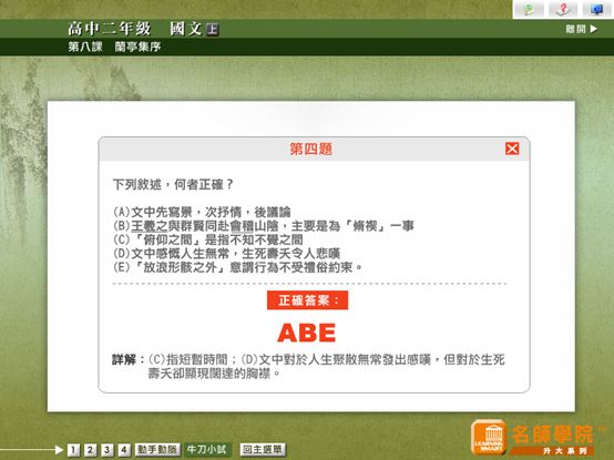 感謝您愛用名師學院產品,關於您提出的問題,請參考下列的回覆: